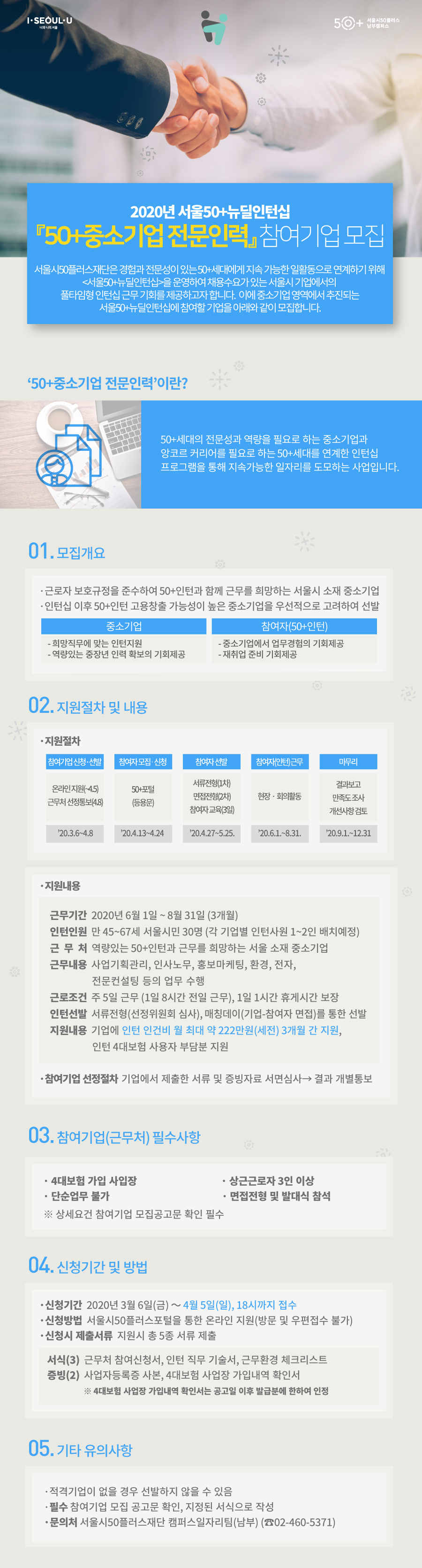 [남부]2020년 서울50+뉴딜인턴십 『50+중소기업 전문인력』 참여기업 모집(수정)