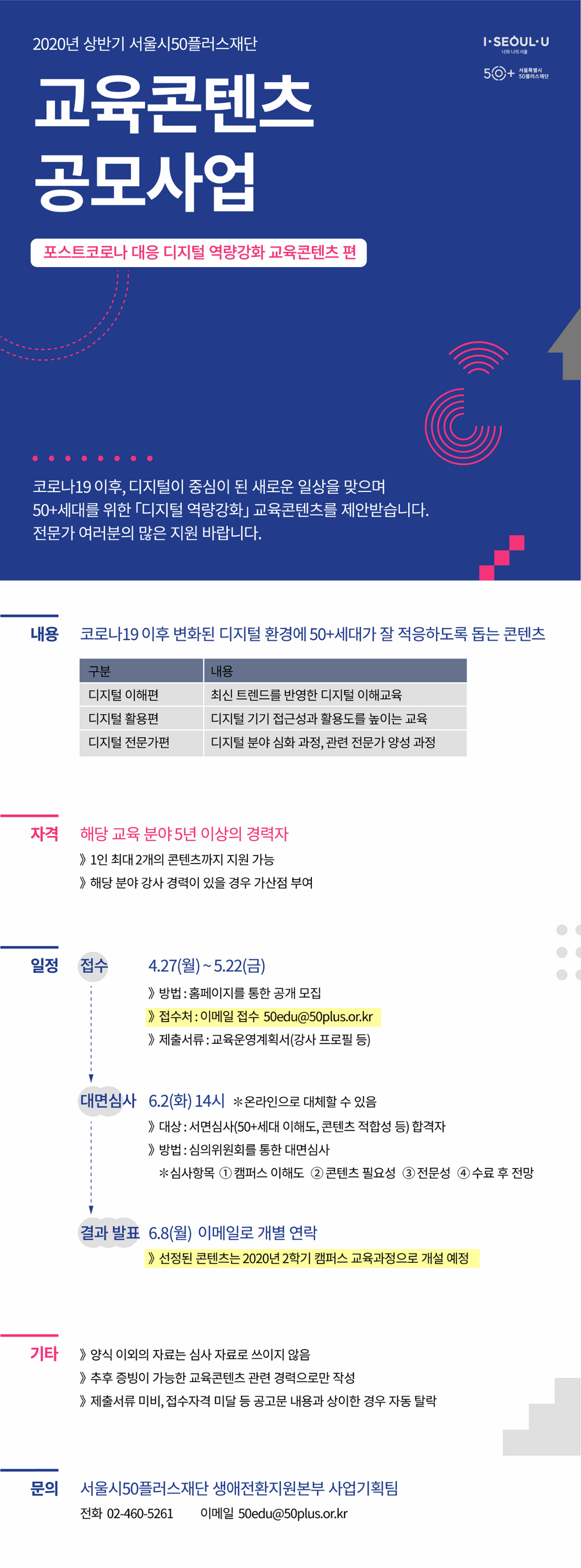 [재단]2020년 상반기 서울시50플러스재단 교육콘텐츠 공모사업