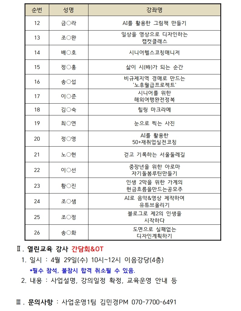 서울시 노원센터 | 2026년 당사자열린교실 2학기 강사모집 선정심사 최종 합격자 발표